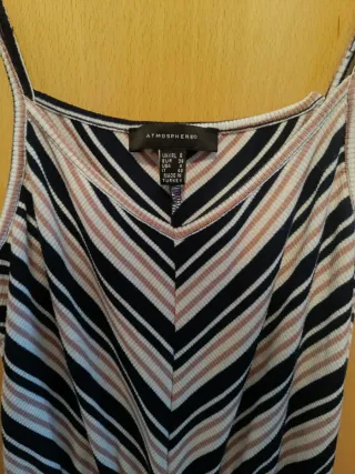 Talla: S (equivale a una 36) - Pecho: 80-86 cm (Aproximado, elástico) - Cadera: 88-92 cm (Ajustado) Estado: Usado en pocas ocasiones Color: Negro y Blanco (Rayas Verticales) Material: 96% viscosa y 4% elastano Detalles: Escote recto con ligero pico central. Tirantes finos ajustables. Rayas verticales que estilizan y alargan la figura. IMPORTANTE: Es ideal para chicas de estatura media, y queda un chic efecto pesquero/tobillero en personas altas (como 1.70m). Este mono es un must-have elegante y versátil que te ahorrará el quebradero de cabeza de combinar.