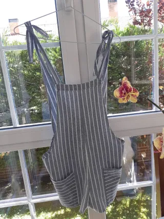 Mono corto de Oysho con estampado de rayas verticales. - Diseño con tirantes. - Cintura elástica con cordón. - Bolsillos laterales. Estado : Nuevo. Precio : 9.99€ Se recoge en mano : -Madrid (a concretar día lugar y hora.)Por compras minimas. -Toledo unicamente en el Pueblo La Guardia. Hago envíos a través de Wallapop.