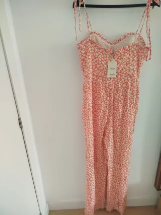 Mono corto corto de tirantes de Bershka con estampado de rayas verticales y escote en pico. Con la espalda descubierta. La talla es una S pero da algo más de talla (referencia modelo: M). Prácticamente nuevo.