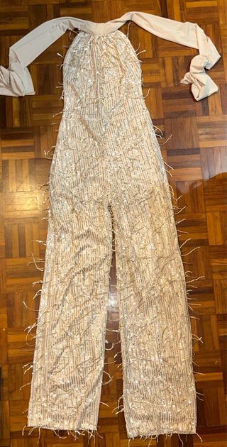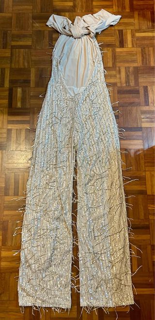 Mono largo con brillos, ideal para eventos o salidas nocturnas. - Diseño sin tirantes. - Piernas anchas.
