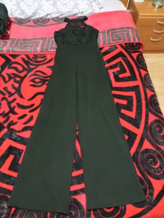 Precioso mono negro para ocasiones especiales. Es nuevo y tiene un diseño elegante y favorecedor. Talla única - Escote en pico. - Cierre con lazo en la cintura. - Tejido suave y ligero. No es de chándal. Queda Pegado. Costó 16€. NO SE REBAJA