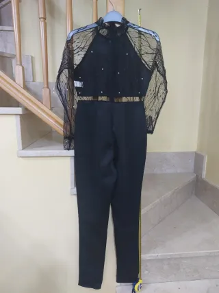 Mono de fiesta marca elogy negro con bolsillos y cuerpo con destellos plateados. Talla M. Está en perfecto estado.