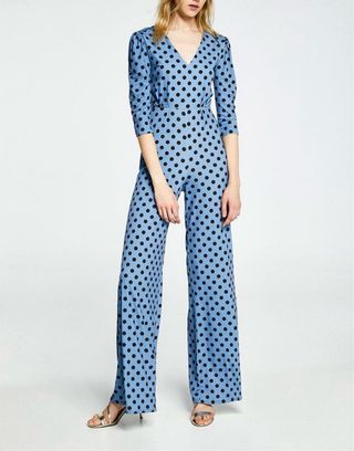 Mono de Zara con un divertido estampado de lunares. - Diseño cruzado. - Cierre de botones. - Manga corta.