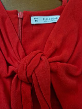 Mono corto de tirantes ajustables, rojo. Tiene un nudo en el pecho. Nuevo, sin estrenar. Talla M