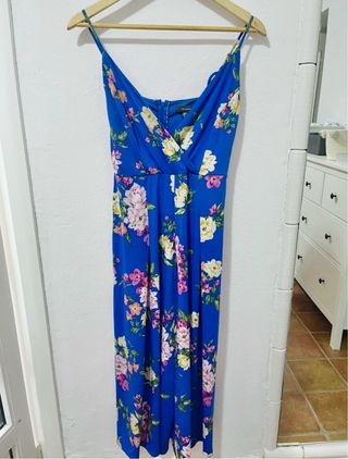 Mono largo con un bonito estampado floral. Ideal para lucir un estilo fresco y veraniego. - Diseño con escote cruzado. - Tirantes finos. - Cremallera en la espalda.
