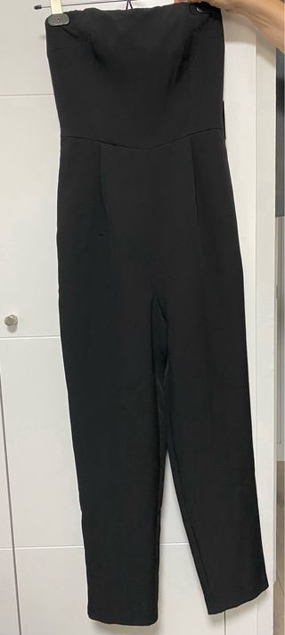 Mono elegante sin tirantes. - Diseño palabra de honor. - Cintura con trabillas - Bolsillos delanteros - Cremallera lateral