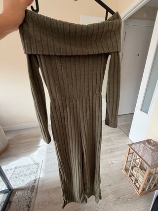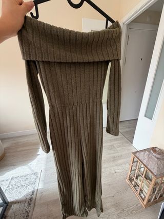 Mono de invierno con un diseño acanalado y escote Bardot. - Tejido acanalado. - Escote Bardot. - Manga larga.