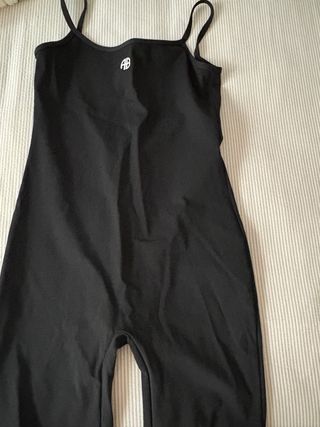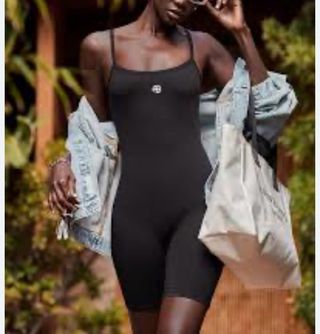 Mono de tirantes Anine Bing en color negro. Diseño ajustado y cómodo. - Logo de la marca en el pecho.