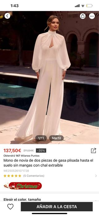 Mono de novia gasa plisada chal extraible NUEVO