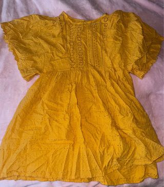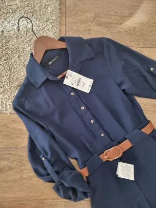 Vestido cruzado de Zara con mangas abullonadas y cinturón. Es tipo mono y por delante parece falda, super cómodo con un poco de elástico que se ajusta perfecto. El material es ante, muy elegante y suave. - Diseño cruzado. - Mangas abullonadas. - Cinturón con hebilla redonda. - Falda pantalón - Material Ante No lo he puesto mucho porque me va pequeño, está prácticamente nuevo!