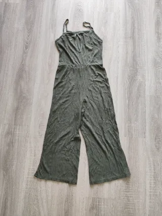 Mono de canalé de de tirantes en color verde oliva de talla M. Llega un poco mas arriba de los tobillos.