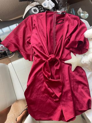 Mono corto de Zara en color rojo. Presenta un diseño con cuello en pico y manga corta con vuelta. - Dos bolsillos frontales. - Cierre de cremallera en la espalda.