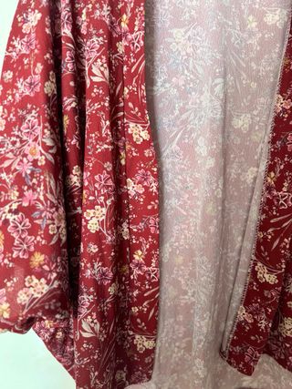 Fular con estampado floral en tonos rojos y multicolor. Es una prenda ligera y versátil. - Diseño floral detallado. - Corte amplio y cómodo.