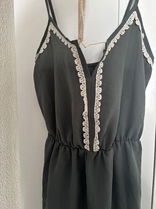Mono de fiesta color negro con hilo plateado. Como nuevo. Es de Mango Teen Talla XS - Tirantes finos. - Cintura elástica.