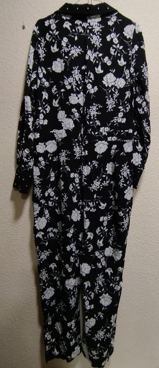 Mono de manga larga. Cuello solapa a juego del puño. Bolsillos y trabillas en cintura. En buenas condiciones.
