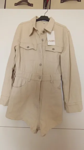 Mono de mujer en color beige. Un diseño elegante y versátil. - Cierre de botones en la parte delantera. - Bolsillos en los laterales. - Cuello en V. Usados 2 veces
