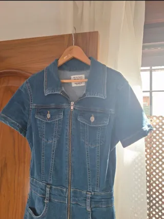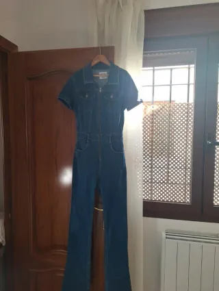 Mono vaquero de manga corta. - Cierre de cremallera frontal. - Dos bolsillos en el pecho. - Cintura marcada. - Piernas acampanadas. Lo vendo porque no le doy uso. Está en perfecto estado, como nuevo. Puedo negociar ofertas Si necesitas alguna foto o tienes alguna duda, pregunta sin compromiso!! ☺️