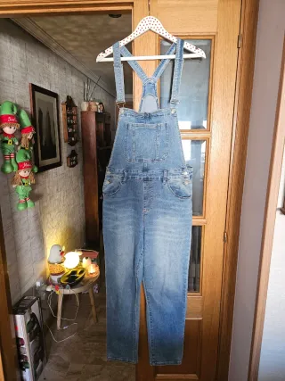 Peto vaquero de Zara con un diseño clásico y versátil. Talla S. - Tirantes ajustables con botones. - Bolsillo frontal tipo canguro. - Costuras reforzadas. - En perfecto estado.