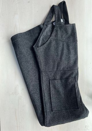 Utilizado en 2 ocasiones. Es de boutique. Tiene forro por debajo, 2 bolsillos en el pantalón y hebillas para poner cinturón en la cintura. Queda entallado en la cadera y pantalón ancho. Es talla S (34)