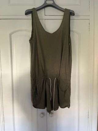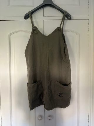 Precioso mono verde, ideal para cualquier ocasión. Es una prenda de vestir amplia y cómoda. - Diseño de tirantes finos. - Cierre con botones. - Tejido suave.