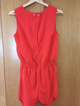 Precioso mono corto de color rojo, ideal para el verano. Es ligero y cómodo de llevar. - Sin mangas. - Cintura elástica. - Bolsillos con cremallera.