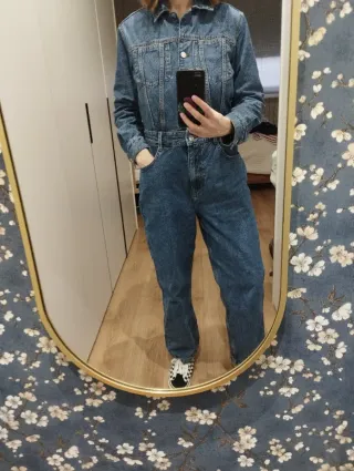 Mono vaquero de Zara, perfecto para un look casual. - Diseño de manga larga. - Bolsillos delanteros y traseros.