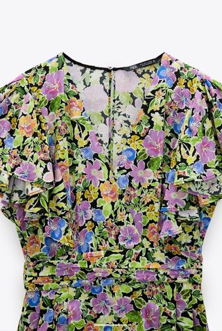 Mono color negro de Zara con acabado en volantes en el bajo. Cierre por cremallera.Nuevo con etiqueta.