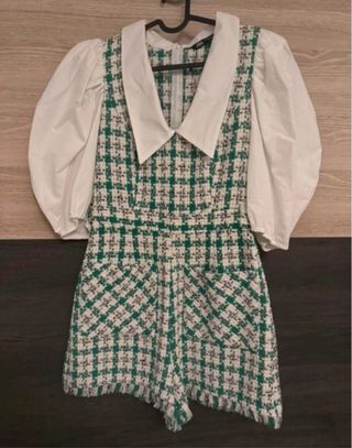 😍 Precioso mono corto con estampado de cuadros príncipe de Gales en tonos grises y negros. ✔️Corte ajustado en la cintura. Puedes ponerlo con o sin cinturón (no incluido). ✔️Manga francesa (3/4). Cuello redondo y cerrado con botón en la espalda para cerrarlo. ✔️Tela elástica que lo hace muy cómodo. Marca Bershka pone talla S pero vale mejor para talla XS 34 Es una prenda muy versátil que queda bien tanto con botas altas como con planas. #femme #mujer #tallaxs #talla34 #mono #gris #bershka #monocorto #modamujer #principedegales #cuadros #temporada