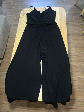 Precioso mono negro para ocasiones especiales. Es nuevo y tiene un diseño elegante y favorecedor. Talla única - Escote en pico. - Cierre con lazo en la cintura. - Tejido suave y ligero. No es de chándal. Queda Pegado. Costó 16€. NO SE REBAJA