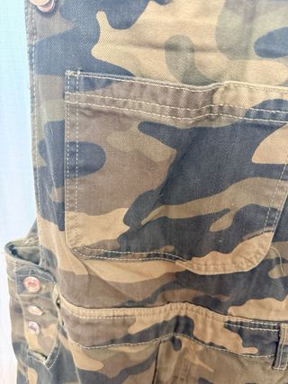 Peto vaquero corto con estampado de camuflaje - Tirantes ajustables con hebillas. - Bolsillo en la parte delantera. - Botones laterales. - Dobladillo en los bajos.