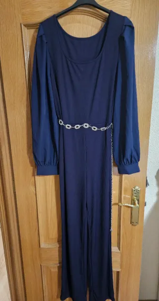Mono de fiesta elegante con lentejuelas brillantes. Está nuevo, sin usar conservando su etiqueta. Es talla única y se adapta perfectamente. - Cuerpo con lentejuelas. - Cinturón a juego. - Manga larga.