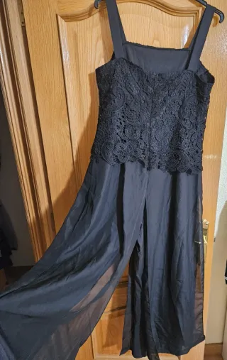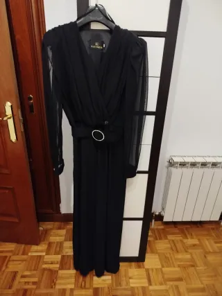 Precioso mono negro largo, ideal para cualquier ocasión. Es una prenda de vestir muy versátil y cómoda. Se puede poner un cinturón - Diseño elegante y sofisticado. - Corte amplio y fluido. - Cintura elástica para un ajuste perfecto. - Manga corta.