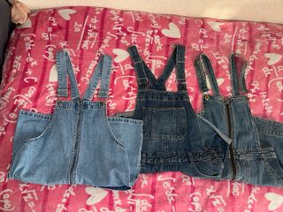 Tres monos vaqueros estilo falda, en azul. Son de diferentes largos y estilos. - Ideales para un look casual. - Perfectos para primavera/verano. - En buen estado. 15€ los 3, (5€ und).
