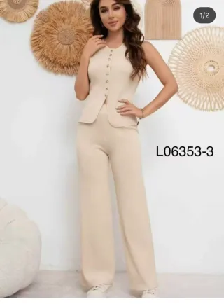 Conjunto de dos piezas, top sin mangas y pantalón. - Top con botones frontales. - Pantalón de tejido ligero.