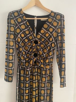 Mono de lunares colour nude. Solamente tiene una puesta. Talla 38, es bastabte largo y facil de coger y sacarle el bajo. Colores tierras y mostaza. Ideal!