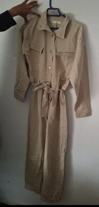 Mono largo de la marca Mango, talla M. Un básico versátil para cualquier ocasión. - Diseño con cinturón anudado. - Cuello camisero. - Bolsillos en el pecho.