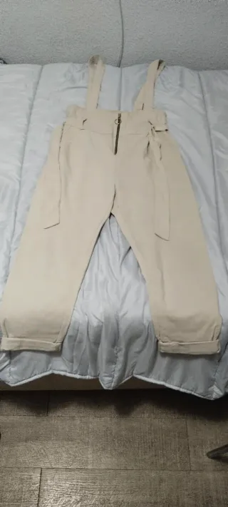 Mono de tirantes en color beige marca Bimba y Lola, perfecto para un look casual y chic. - Nuevo con etiquetas - Diseño de pierna ancha. - Tejido de algodón. - Incluye prácticos bolsillos en las costuras laterales y el logotipo de la marca personalizado en el exterior. Se puede enviar o recoger en Tienda Solidaria Piel de Mariposa MARBELLA C/Jacinto Benavente 12 (+ info en la última foto)