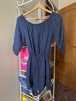 Mono de color azul, con un diseño moderno y cómodo. - Escote elástico. - Mangas tres cuartos. - Cintura elástica.
