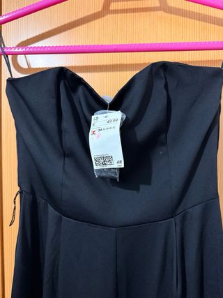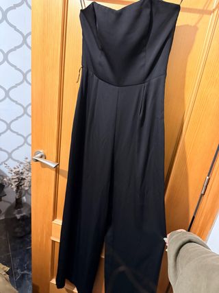 Elegante mono largo de vestir. - Diseño sin tirantes. - Detalle de botones dorados en la parte frontal. - Corte recto en la parte inferior. Corresponde a talla S .