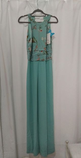 Precioso mono largo de la marca Fórmula Joven (El Corte Inglés), ideal para eventos de día o tarde como bodas, comuniones o graduaciones. Su color verde agua/turquesa claro es muy favorecedor y perfecto para la temporada de eventos. Marca: Fórmula Joven Talla: 38 (M) Estado: Nuevo con etiquetas Se puede enviar o recoger en Tienda solidaria piel de Mariposa MÁLAGA C/Héroe Sostoa 80 (+ info en la última foto)