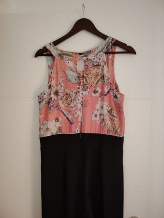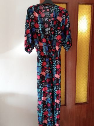 Precioso mono largo con estampado multicolor. Ideal para verano. - Tiene las costuras un q se ve el hilo un poco por detrás, adjunto foto - Cierre con lazada en el cuello. - Detalle de cuentas en el escote. - Tejido ligero y fluido. - Corte amplio y cómodo.