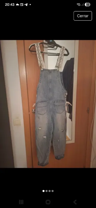Peto vaquero de pierna ancha. - Diseño moderno y cómodo. - Bolsillos frontales con cremallera. - Estilo casual y versátil.