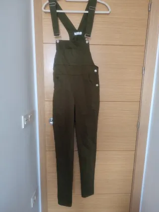 Mono largo de color verde, ideal para un estilo casual. Pone M pero da menos talla, perfecto para 36/38 (S) Sin uso , en perfectas condiciones - Tirantes ajustables con hebillas metálicas. - Bolsillos laterales. - Cierre de botones a presión en los laterales.
