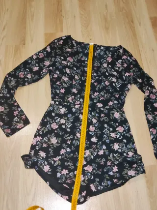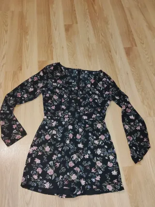 Mono corto de mujer con un bonito estampado floral. Ideal para lucir un estilo fresco y moderno. - Manga larga. - Escote en V. - Cintura marcada. - Cierre con cremallera. - Tejido fino pero con forro. - En buenas condiciones - No tiene etiqueta, creo recordar que era de Stradivarius y talla S.