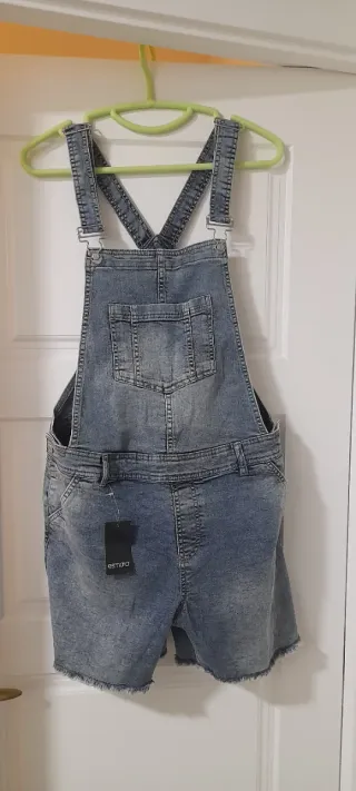 Mono corto de estilo veraniego, perfecto para días cálidos. - Tirantes con detalle de anillas. - Cintura elástica para un ajuste cómodo. - Diseño ligero y fresco.