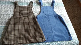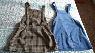 Conjunto de dos petos, uno de Mango y otro de la marca Caramelo. Talla XS (sirven para T/S). - Peto de cuadros marrón y beige (Caramelo). - Peto de pana azul (Mango). A estrenar!!!