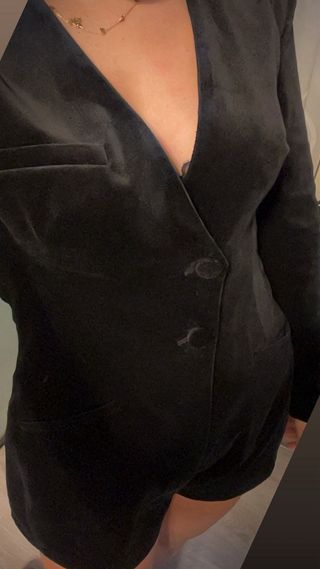 Mono tipo blazer de Zara. Confeccionado en terciopelo. - Diseño cruzado con dos botones. - Bolsillos de solapa. - Hombros marcados.