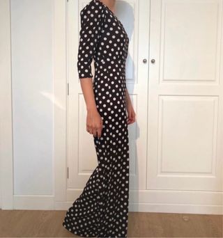 Mono en color negro con lunares blancos. Muy cómodo porque es de tela elástica. Puesto solo una vez. Perfecto para boda, comunión o evento.