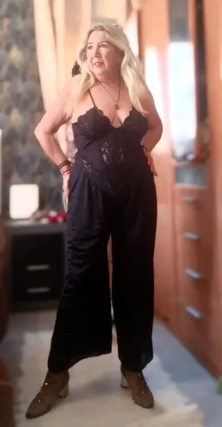 Mono largo palabra de honor, color negro. de tejido ligero, pero sin transparencias ni se pega al cuerpo. elásticos en los tobillos y en el pecho, para que no se mueva. lleva dos bolsillos con tapeta y botones metálicos y cremallera. Muy cómodo. De vestir y casual. Nunca se llegó a estrenar, pero le quité la etiqueta