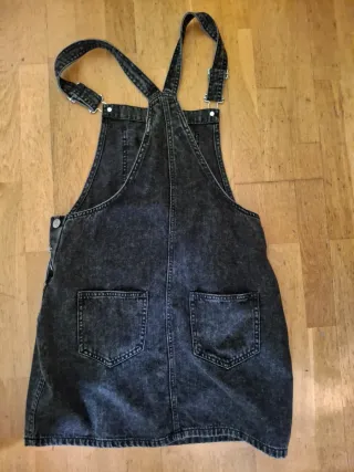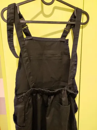 Peto vaquero corto de color negro. Precio negociable. - Tirantes ajustables. - Bolsillos delanteros y traseros. - Dobladillo en los bajos.